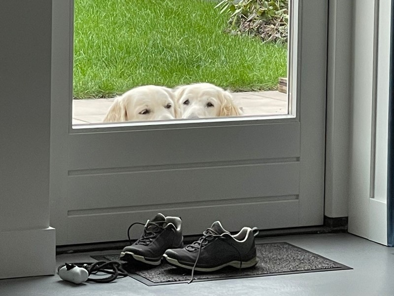 De pups drinken en groeien goed, Bella moet hard werken met 10 kleintjes. Bella is erg bezorgd om ze en ze houdt ons goed in de gaten als we de pups willen wegen.